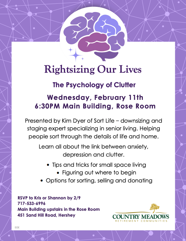 If you are interested in this event, please contact Julie Turner, IL Dynamic Living Coordinator at jturner@countrymeadows.com or Julie Steffen, Director of Dynamic Living at jsteffen@countrymeadows.com by Friday, September 16.
