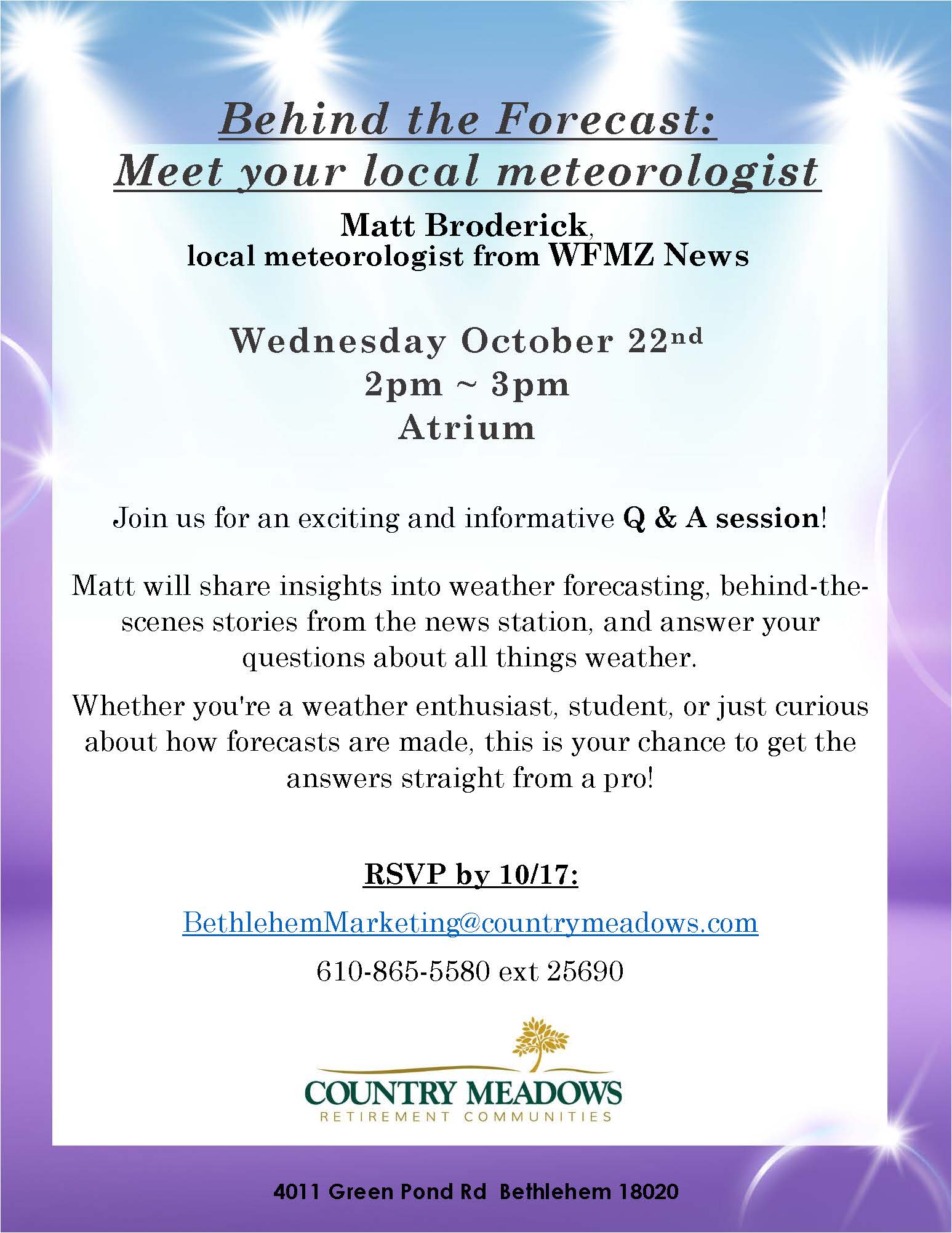 Join us for an exciting and informative Q & A session with Matt Broderick, local meteorologist fromWFMZ News