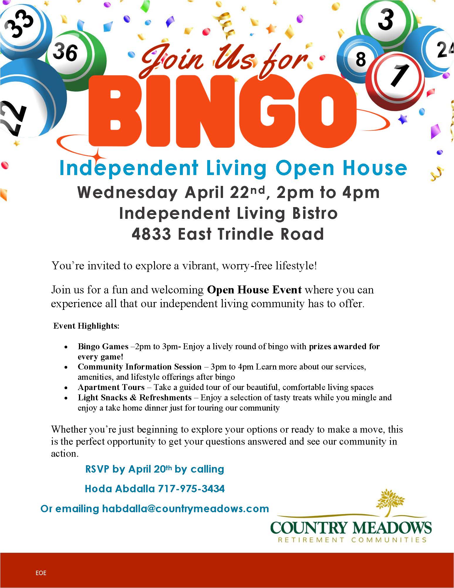 RSVP by April 20th by calling Hoda Abdalla 717-975-3434 Or emailing habdalla@countrymeadows.com