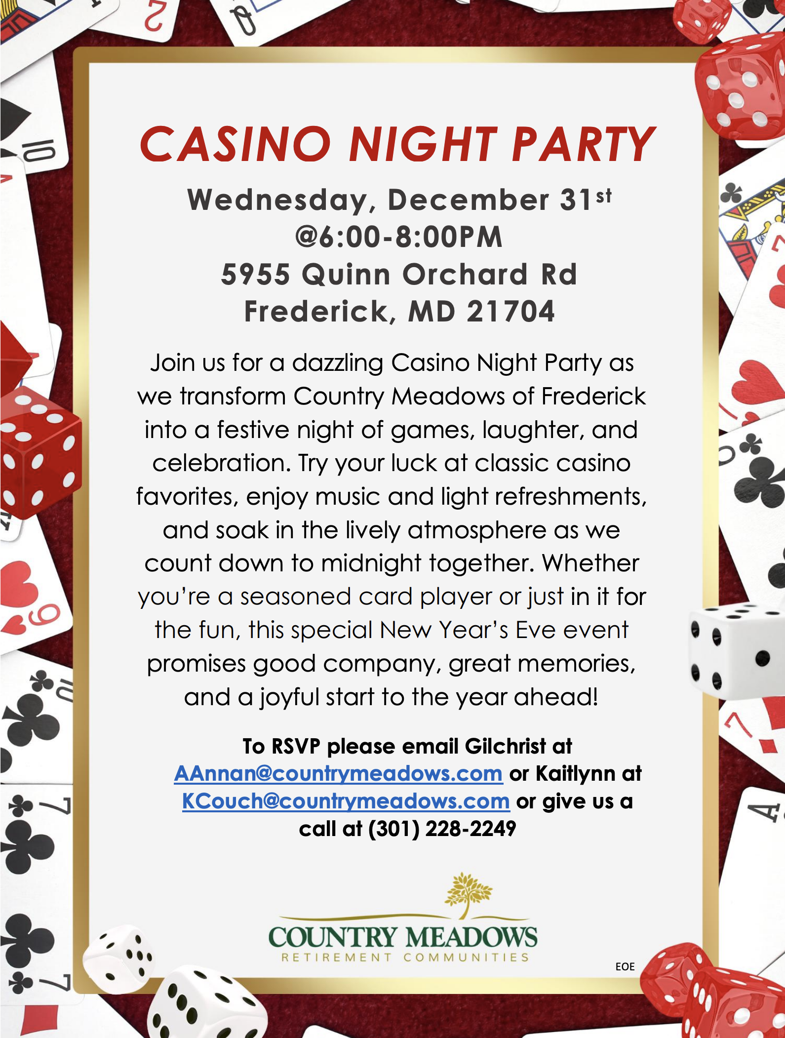 To RSVP please email Gilchrist at AAnnan@countrymeadows.com or Kaitlynn at KCouch@countrymeadows.com or give us a call at (301) 228-2249