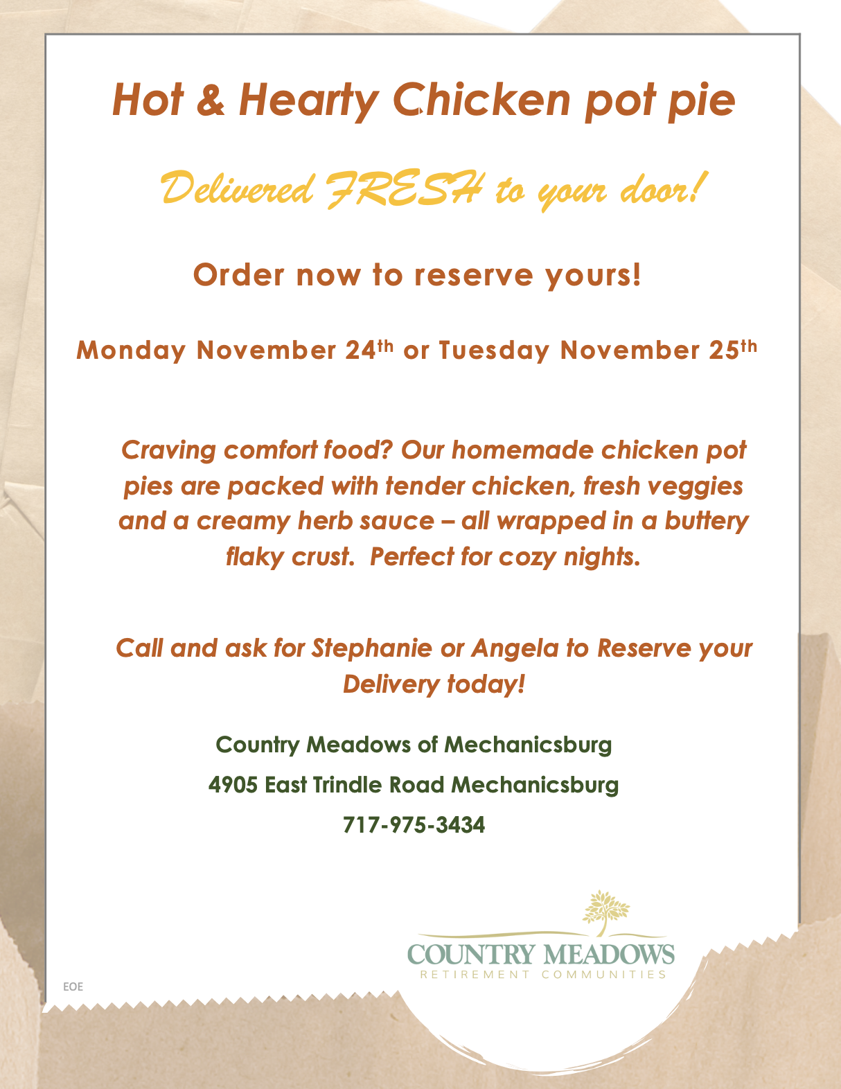 Call 717-975-3434 and ask for Stephanie or Angela to Reserve your Delivery today!