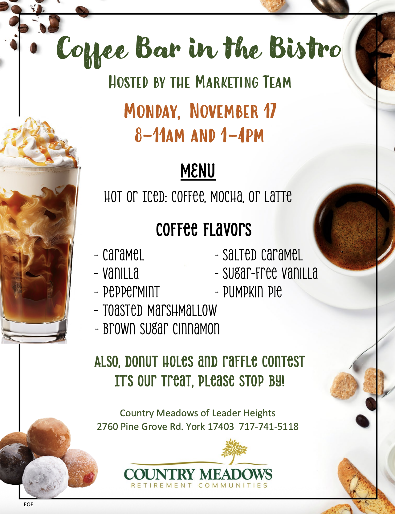 Also, donut holes and raffle contest It’s our treat, Please stop by!