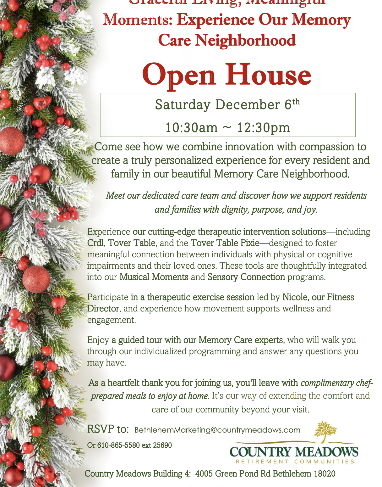 RSVP to: BethlehemMarketing@countrymeadows.com Or 610-865-5580 ext 25690