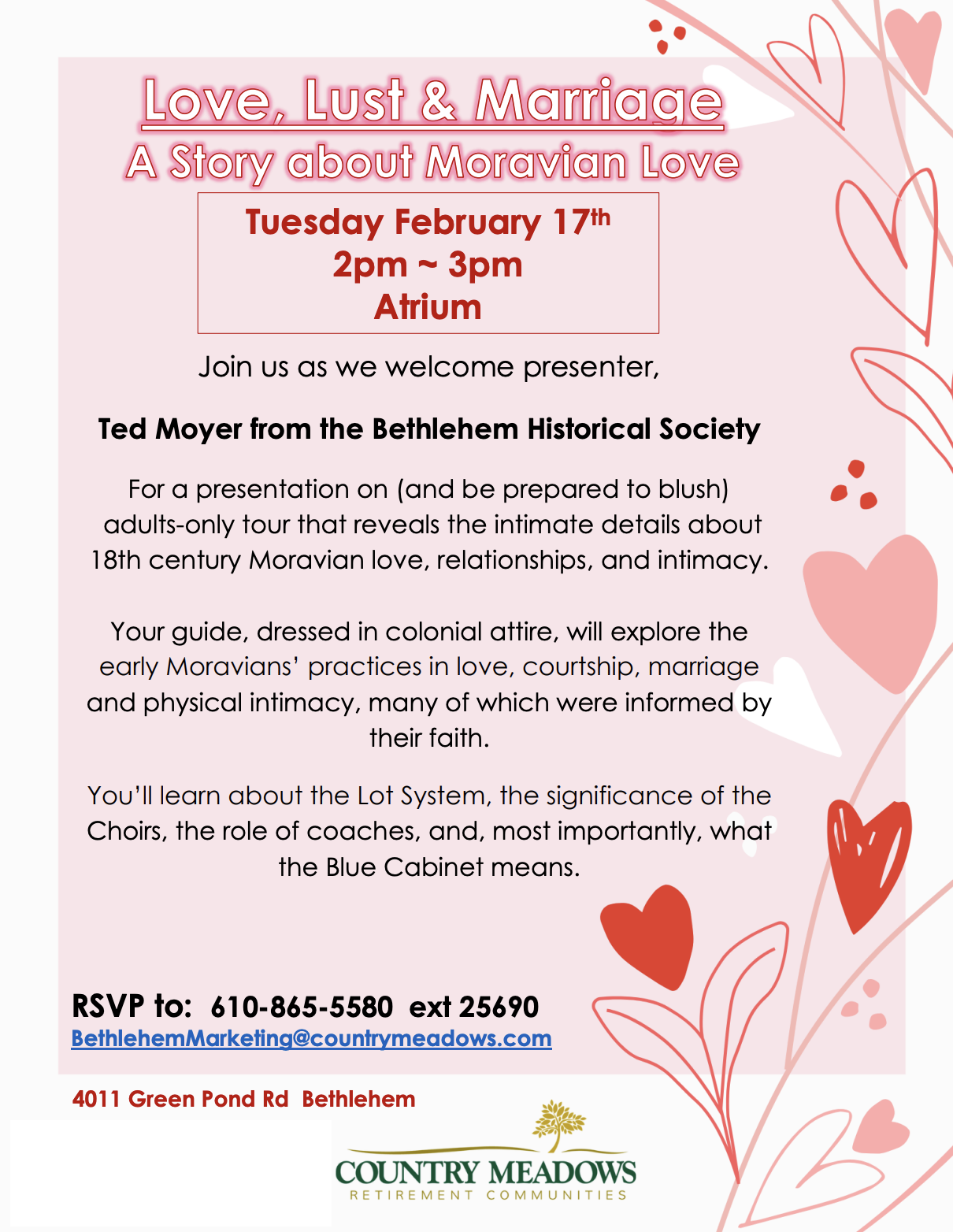 RSVP to: 610-865-5580 ext 25690 BethlehemMarketing@countrymeadows.com