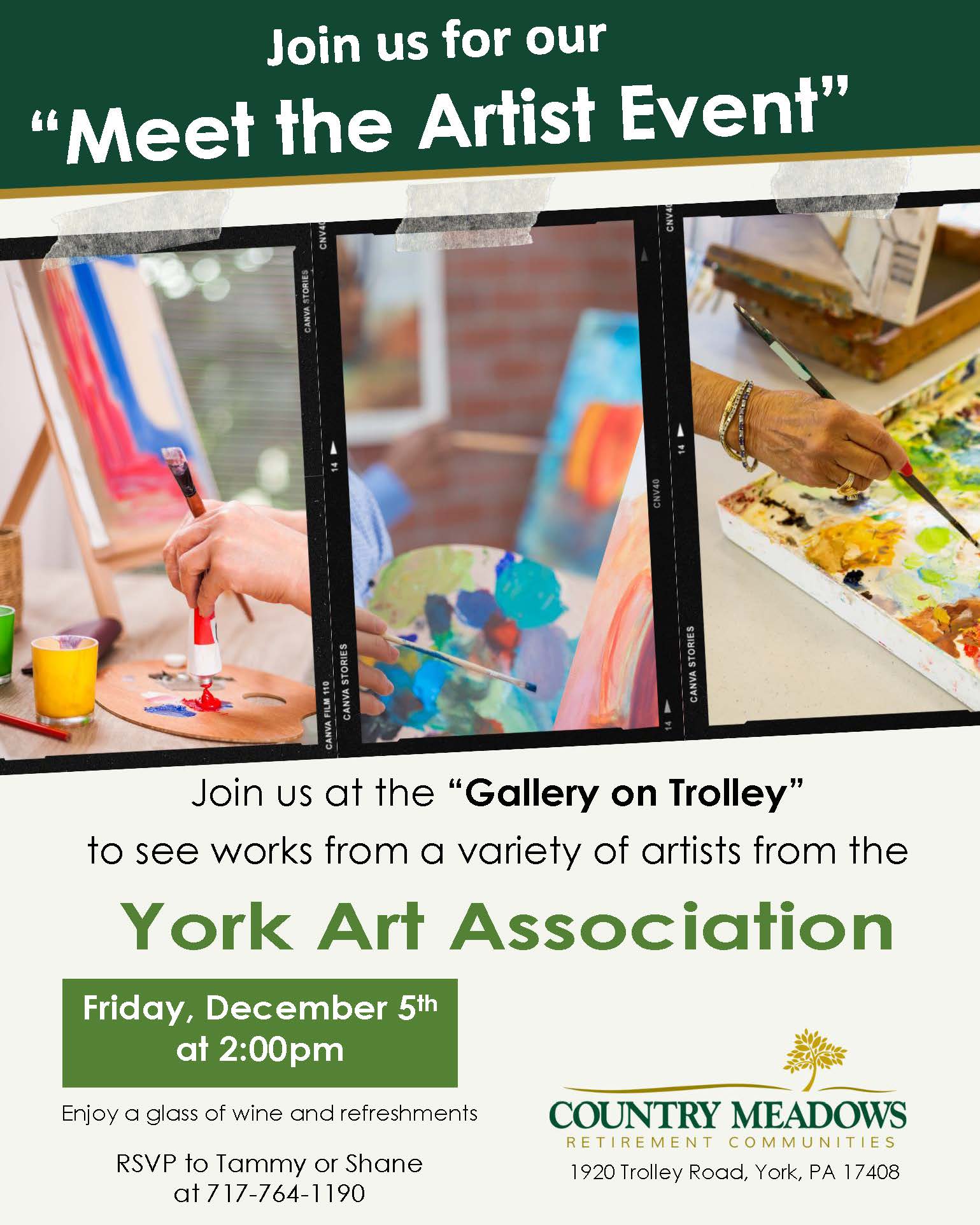 Join us at the “Gallery on Trolley” to see works from a variety of artists from the York Art Association