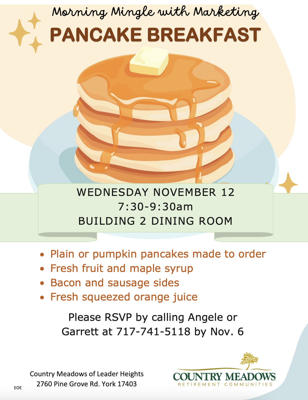 Please RSVP by calling Angele or Garrett at 717-741-5118 by Nov. 6