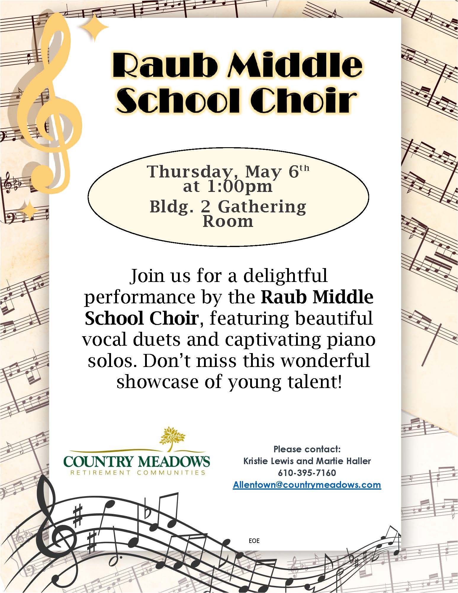 Please contact: Kristie Lewis and Martie Haller 610-395-7160 Allentown@countrymeadows.com