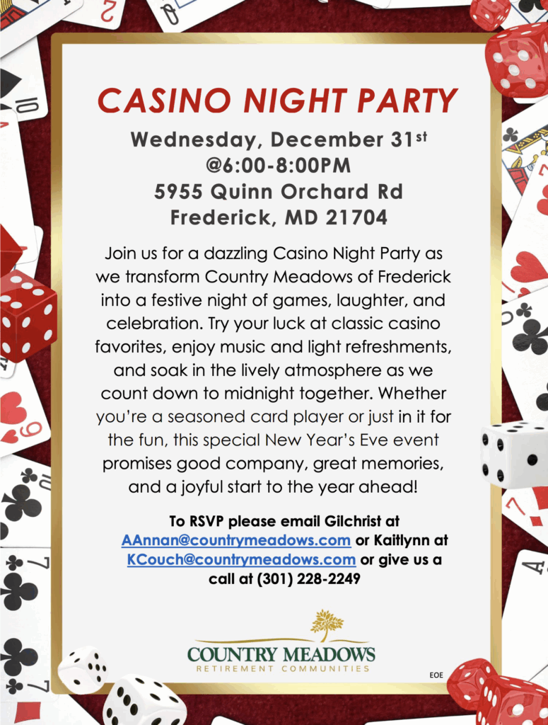RSVPs kindly requested 2 days prior to each tour to Frederick@CountryMeadows.com or 301-228-2249
